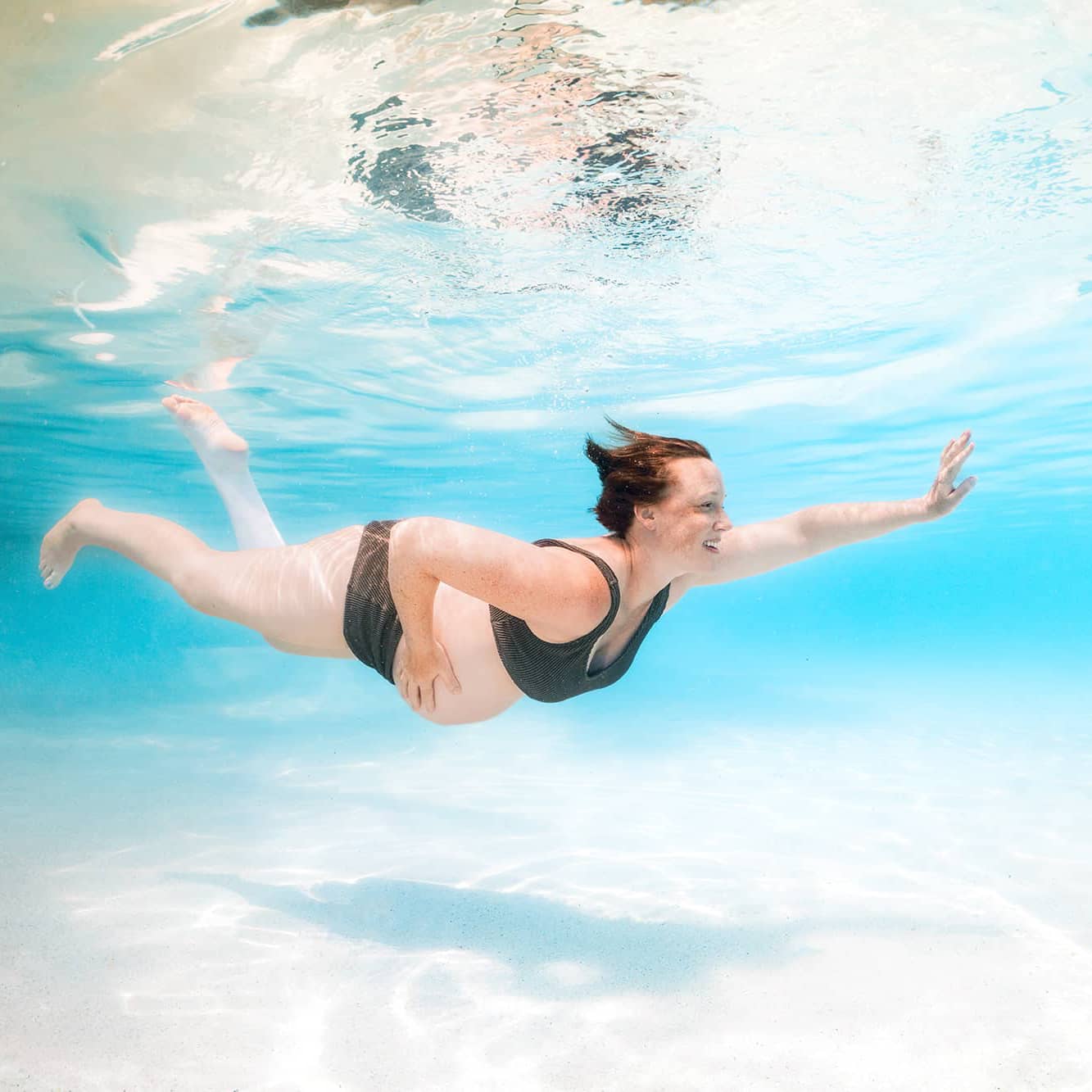 For these reasons, I highly recommend underwater maternity photoshoots in pools. If you’d like a natural setting, we can explore the option of a freshwater creek shoot, though the water will be cooler.